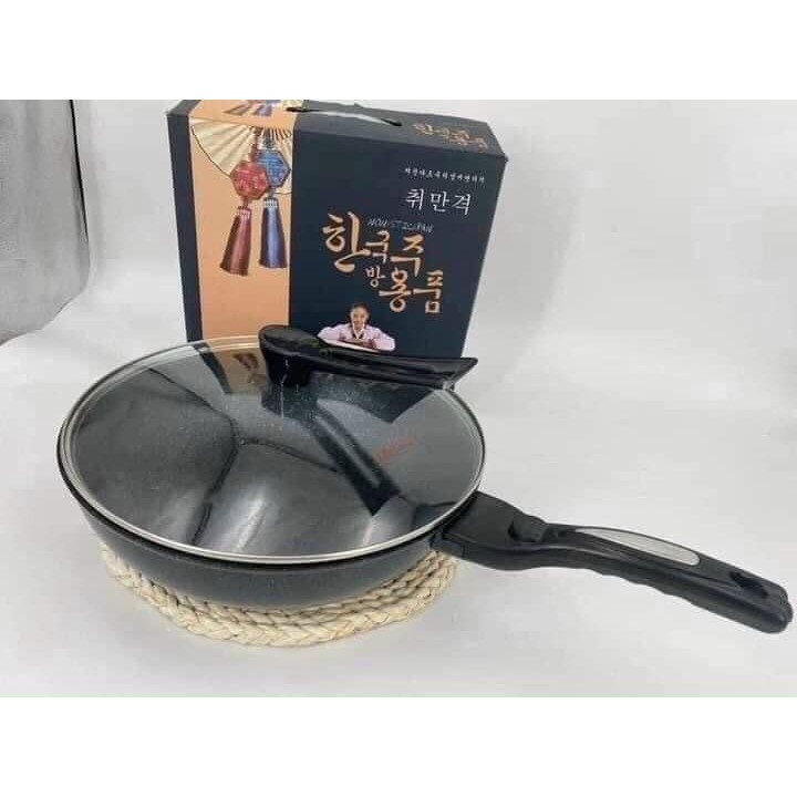 Chảo Chống Dính Bếp Từ Vân Đá Hàn Quốc Sâu Lòng Size 32 Kèm Nắp Vung Kính Tặng Kèm Muôi Gỗ Nấu Ăn Đa NăngChảo này có kèm nắp vung kính và muôi gỗ nấu ăn cực kì đa năng mọi người ạ. Chiên xào rán luộc hấp cả bữa ăn chỉ với 1 cái chảo. Rất tiện phải không mọi người.
