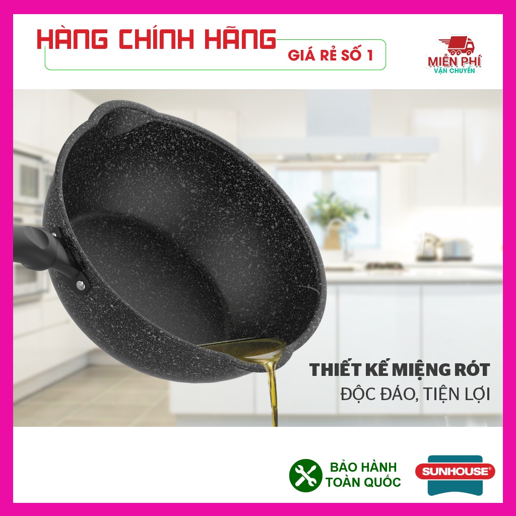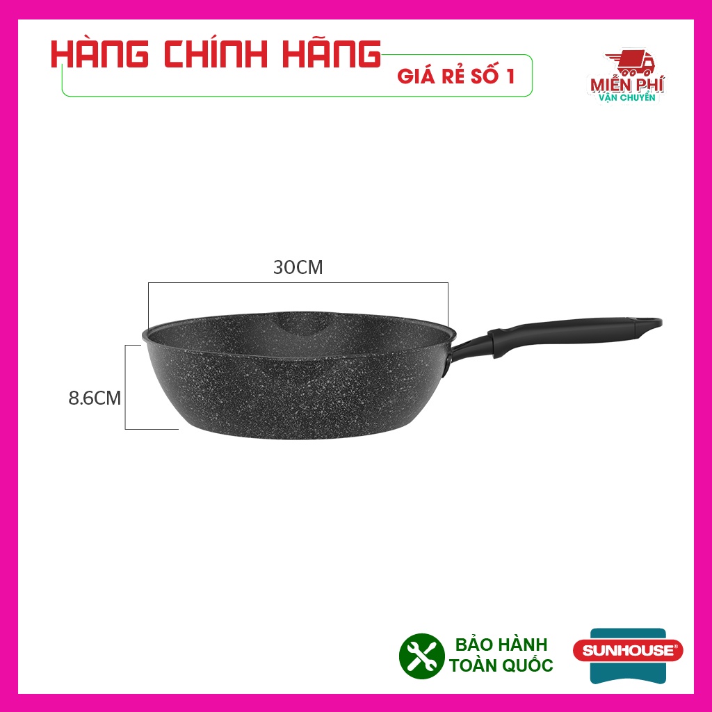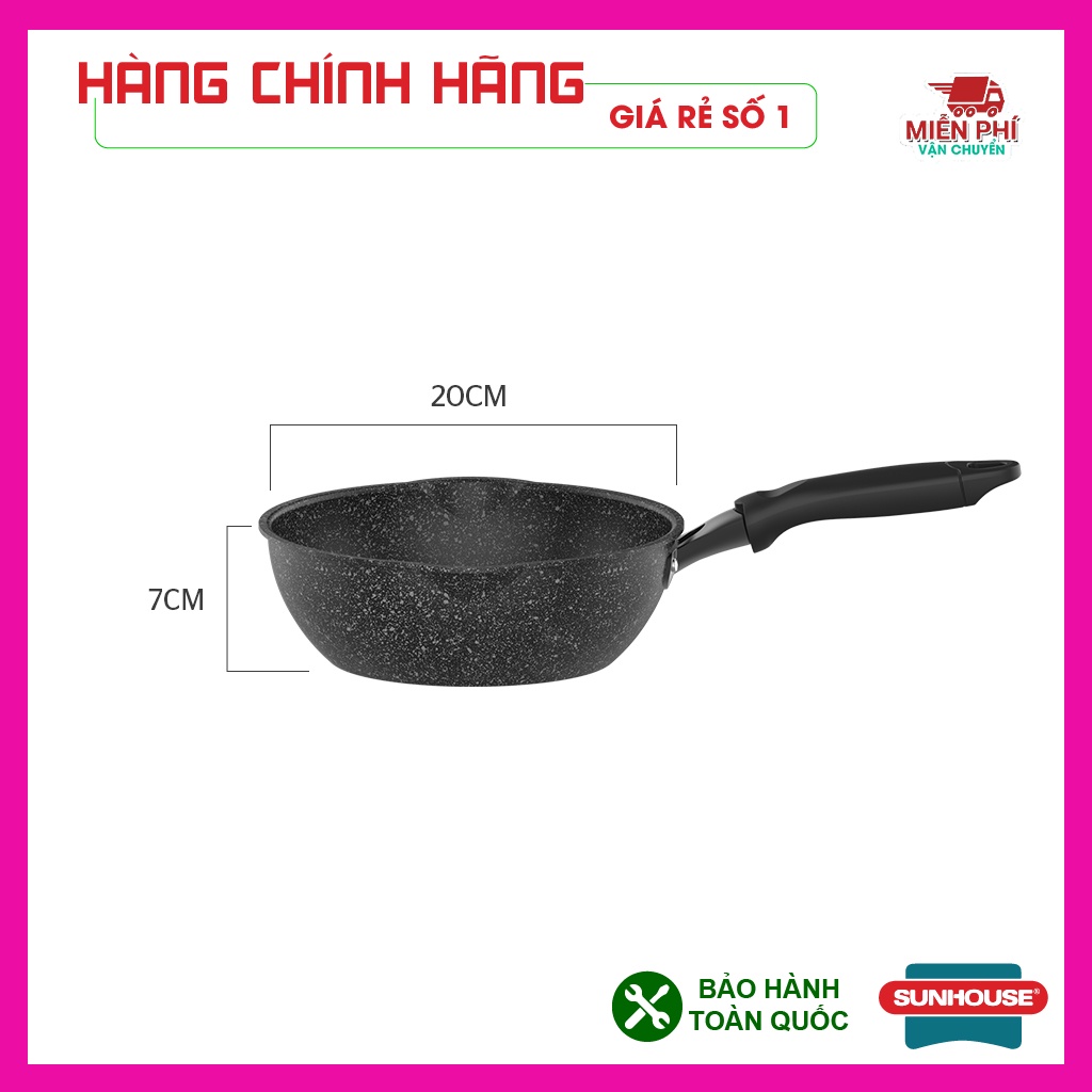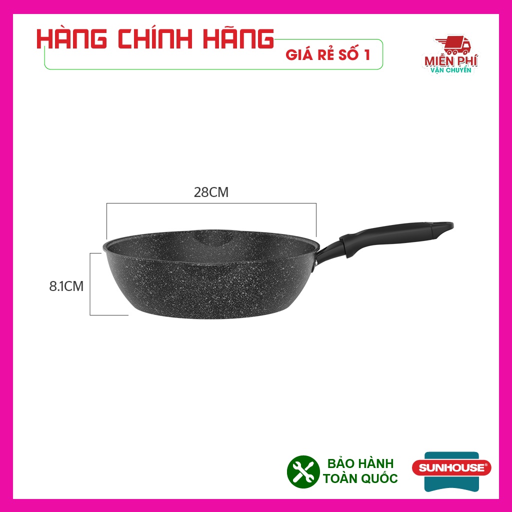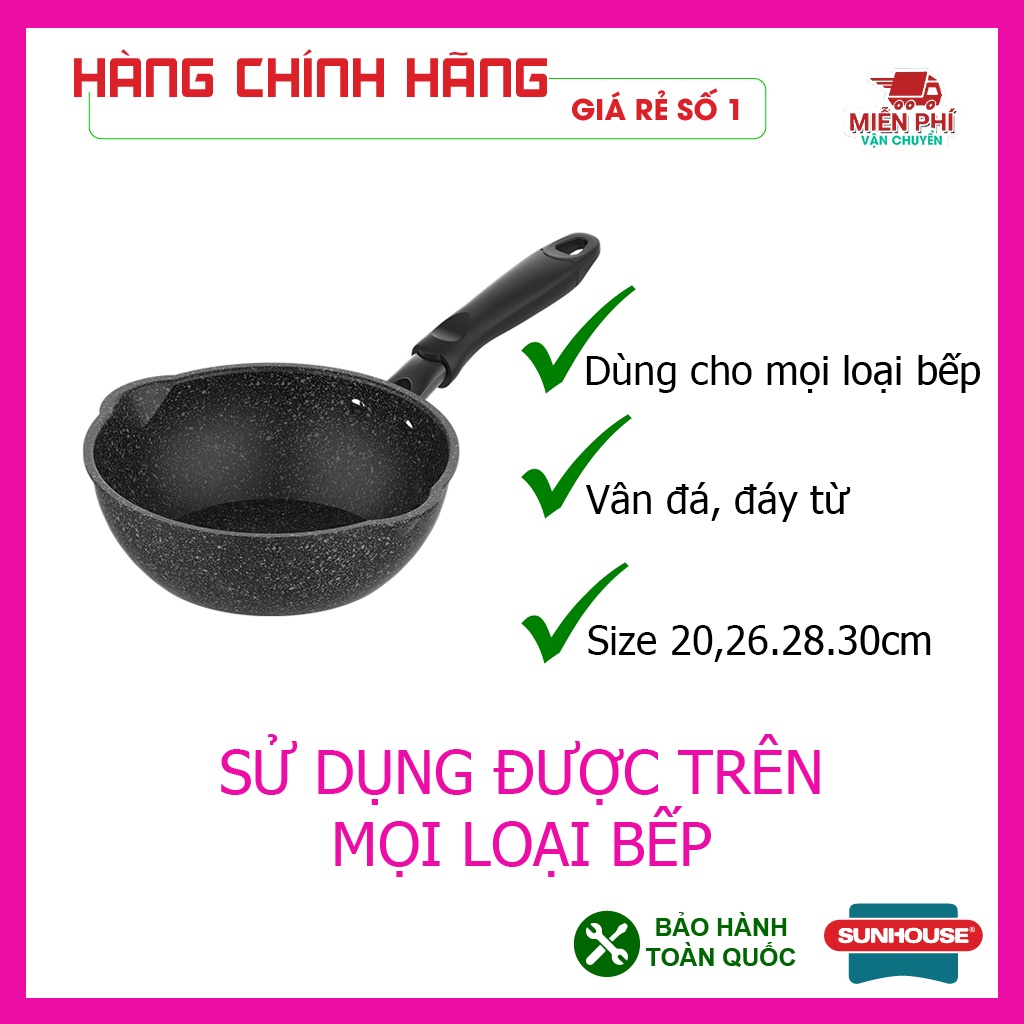 Nhà cửa & Đời sống > Dụng cụ nhà bếp > Chảo || Chảo chống dính bếp từ đáy sâu vân đá, dùng được trên mọi loại bếp, miệng rót, chảo Sunhouse kích thước 20,26,28,30cmCòn hàng