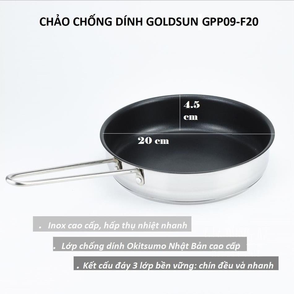 Giới thiệu Chảo chống dính bếp từ Goldsun GPA1401-20IH, Chảo Inox 20cm dùng để chiên xào hàng chính hãng bảo hành 12 tháng