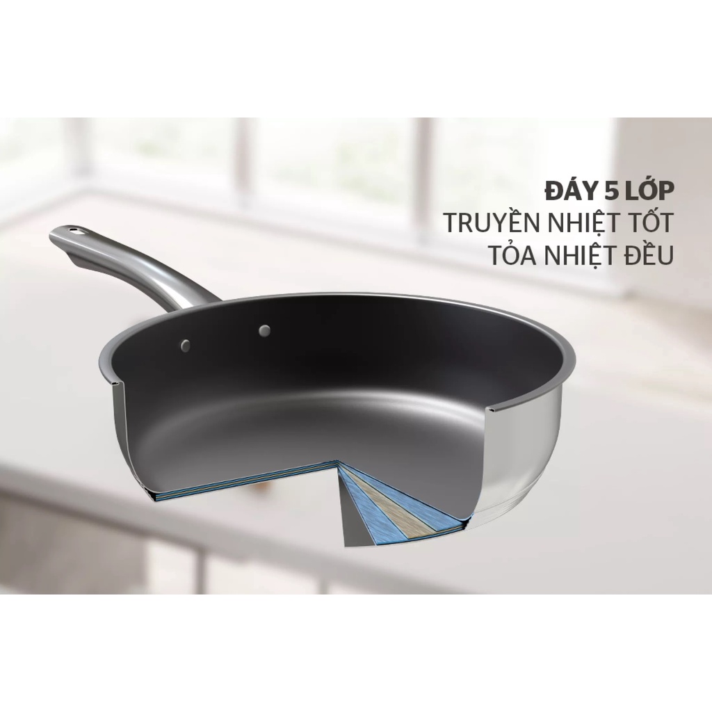 - Với chất liệu inox không gỉ cùng lớp chống dính Whitford (USA) cao cấp, chảo inox 5 đáy SUNHOUSE giúp cho công việc xào nấu được nhanh chóng và gọn nhẹ hơn rất nhiều.