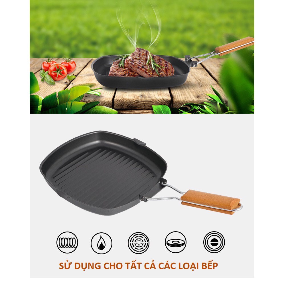 - Tay cầm gỗ chịu nhiệt, đặt biêt có thể gấp gọn