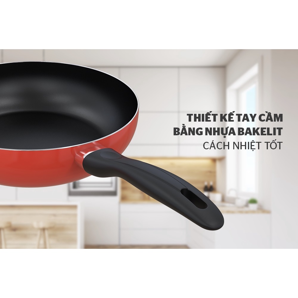 • Chảo được làm từ nhôm nguyên chất, hạn chế móp, méo khi va đập. Chất liệu nhôm còn có khả năng dẫn nhiệt tốt giúp món chiên xào được ngon hơn.