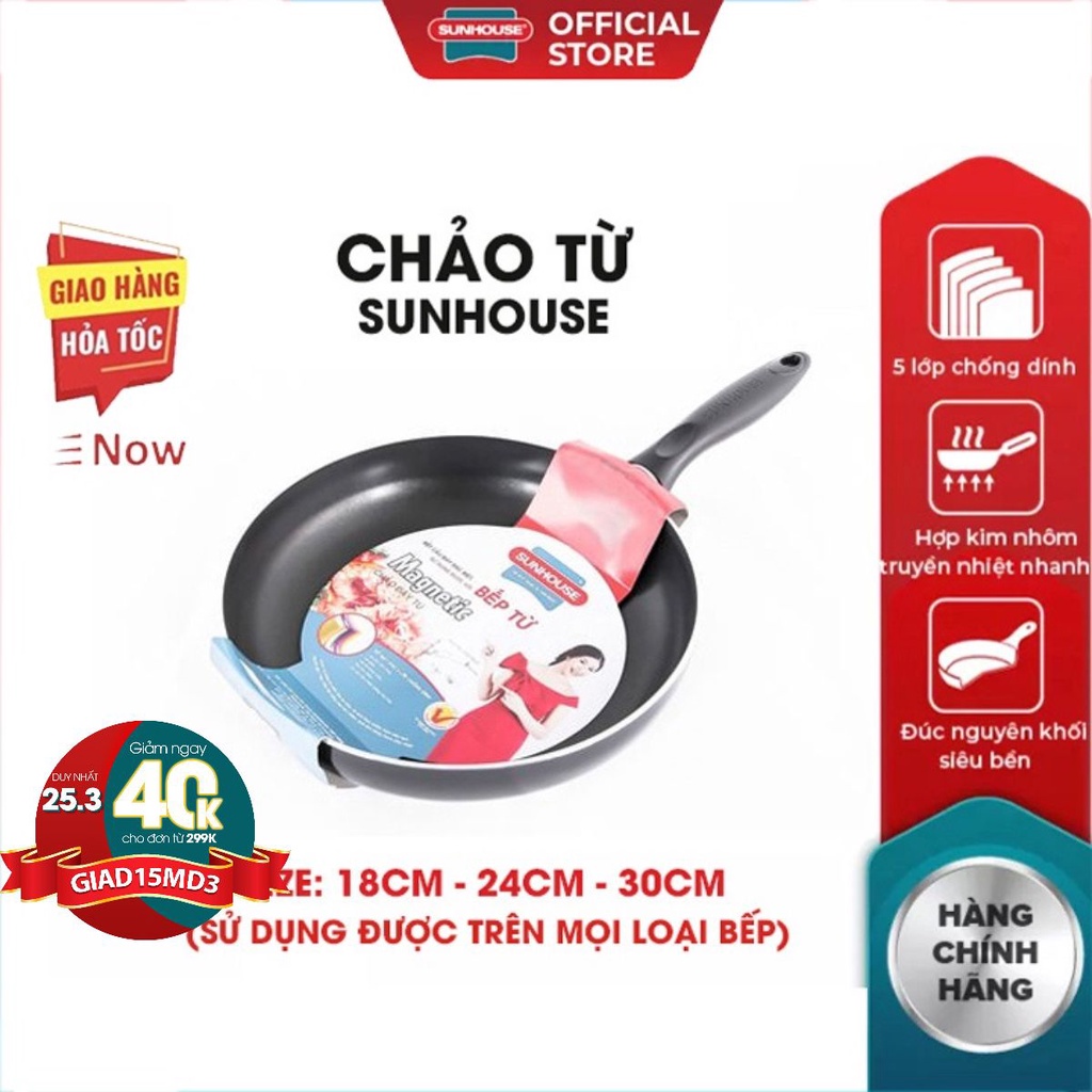 Nhà cửa & Đời sống > Dụng cụ nhà bếp > Chảo || Chảo chống dính bếp từ SUNHOUSE 18 26 30 CM 5 Lớp siêu bền cao cấp hợp kim nhôm tay cầm chịu nhiệtCòn hàng