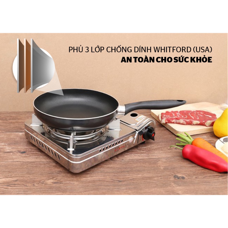 - Bề mặt chảo phủ lớp chống dính Whitford nhập khẩu từ USA