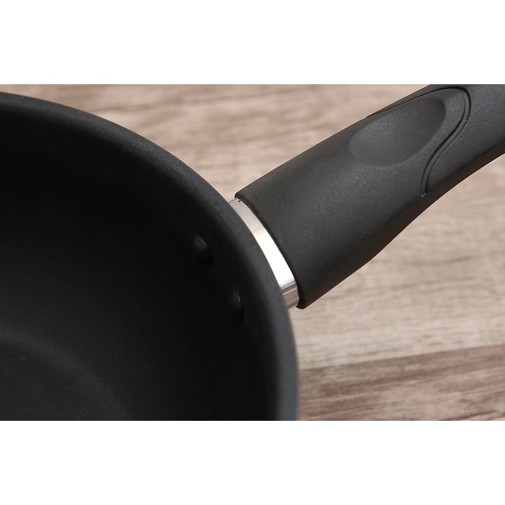 Cán chảo to đầm tay, cầm chắc chắn tránh làm đổ đồ ăn khi đồ ăn nhiều mà chảo quá nhẹ.
