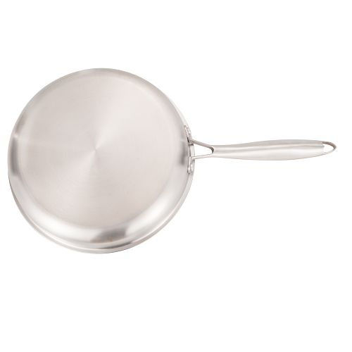 + Với lớp ngoài cùng là Inox 430 để dễ dàng bắt được nhiệt từ bếp từ truyền trực tiếp lên thành chảo và làm nóng chảo nhanh chóng.