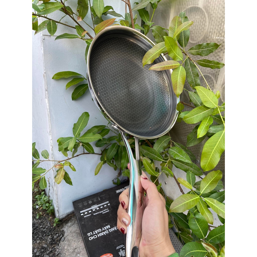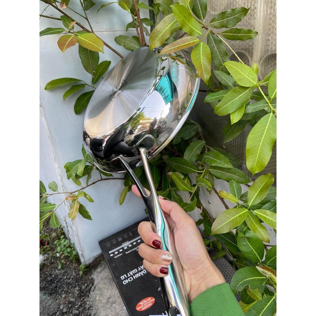 Nhưng đổi lại là Quý Khách có thể nấu sò, ốc sử dụng các dụng cụ kim loại để xào, rửa chảo bằng cước inox mà không phải sợ vấn đề bong tróc, trầy xước men chống dính như các loại chảo chống dính trên thị trường. Khi bị tróc men chống dính nấu ăn rất có hại cho sức khỏe đấy ạ.