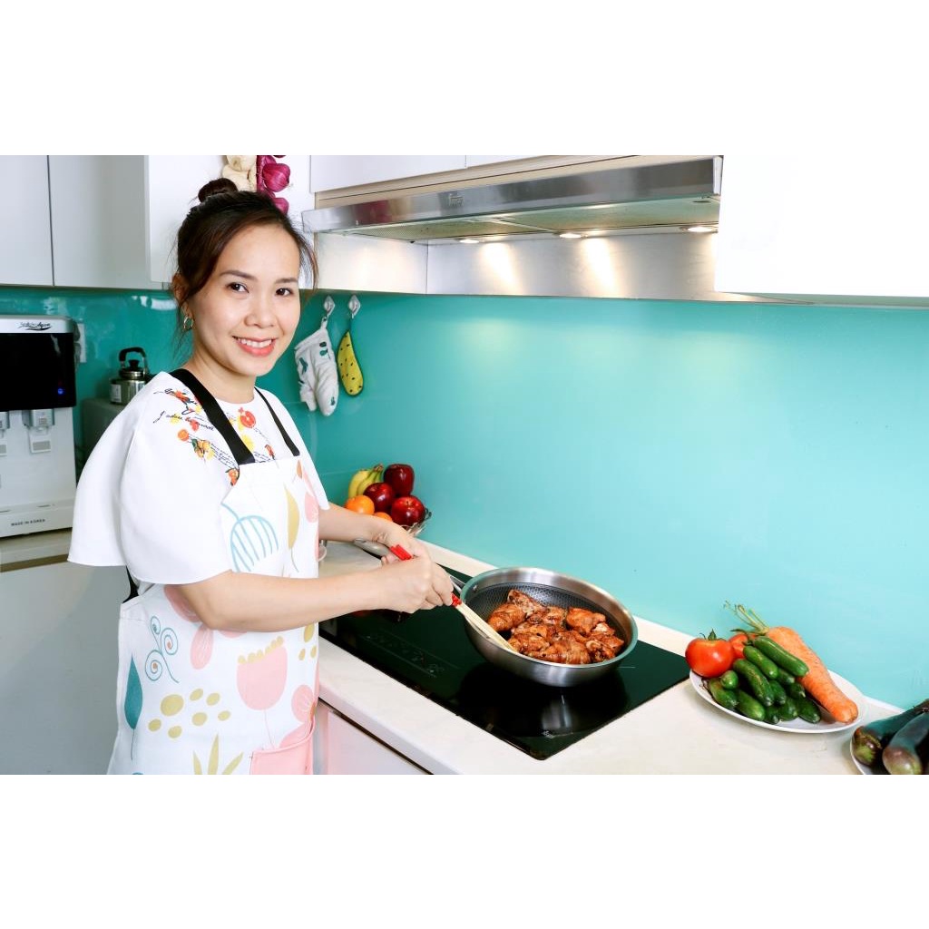 + Với lớp ngoài cùng là Inox 430 để dễ dàng bắt được nhiệt từ bếp từ truyền trực tiếp lên thành chảo và làm nóng chảo nhanh chóng.