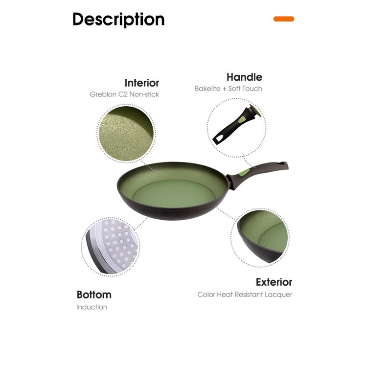 - Tay cầm bakelite cách nhiệt đúc sơn ấn tượng. Cho cảm giác êm ái và chắc chắn khi thao tác xào nấu.