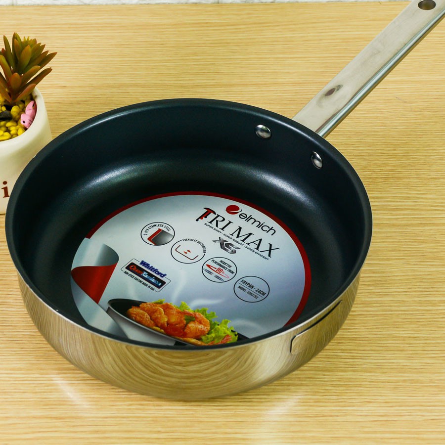 Chảo chống dính cao cấp Inox 304 đáy liền khối Elmich Tri-Max XS EL-3752 đường kính 24cm chính hãng, bảo hành 5 năm