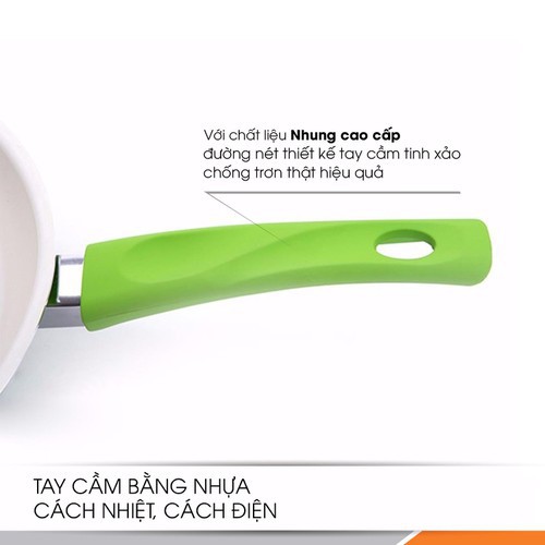 Lòng chảo sâu, với chất liệu ceramic chống dính, dễ dàng nấu nướng và vệ sinh sản phẩm.