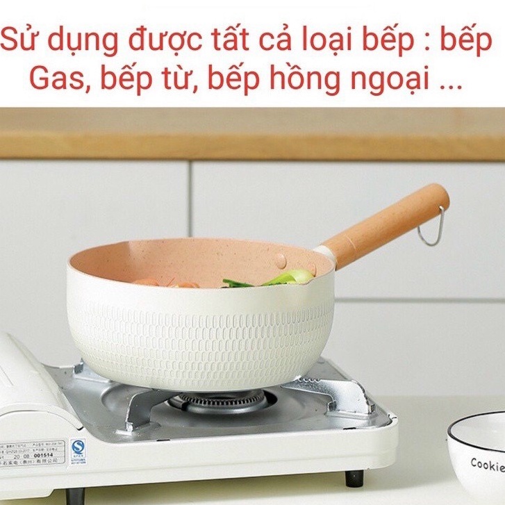 Chảo chống dính Ceramic đáy lòng sâu có tay cầm cán gỗ chống bỏng màu pastel lúa mạch- lưu ý: chảo không kèm nắp
