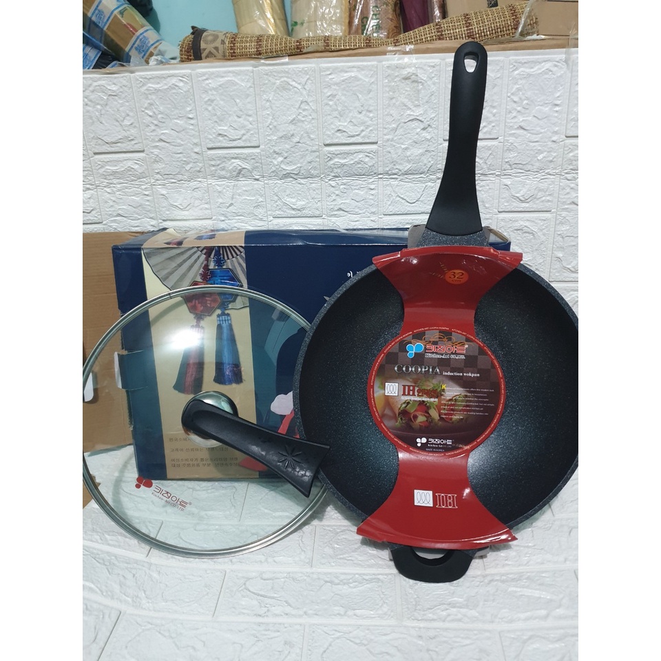 Chảo chống dính đá sâu lòng Coopia Hàn Quốc có nắp kính size 32cm