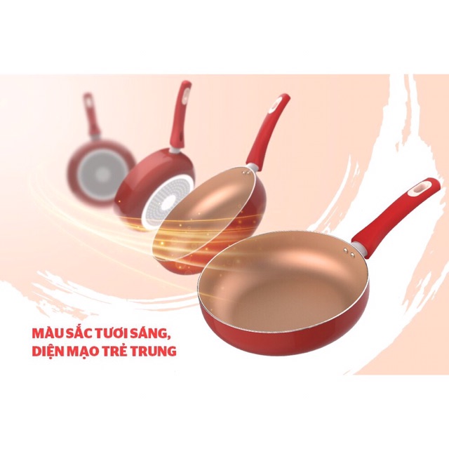 ✔ Sơn màu chịu nhiệt bên ngoài: Vỏ ngoài chảo được sơn một lớp chịu nhiệt màu đỏ gạch bắt mắt, chống bám bụi, hạn chế trầy xước, dễ dàng vệ sinh.