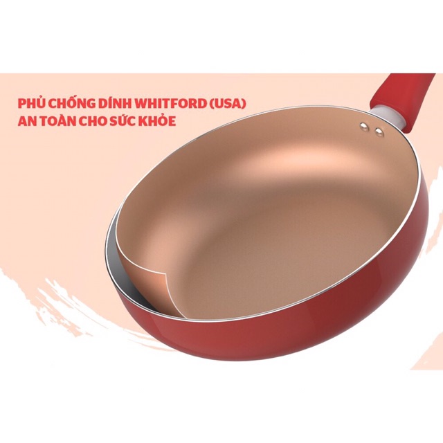 ✔ Lớp chống dính Whitford bền bỉ: Lòng chảo được phủ chống dính Whitford (USA) cho độ bền cao, không dễ bong tróc như các loại chảo khác.