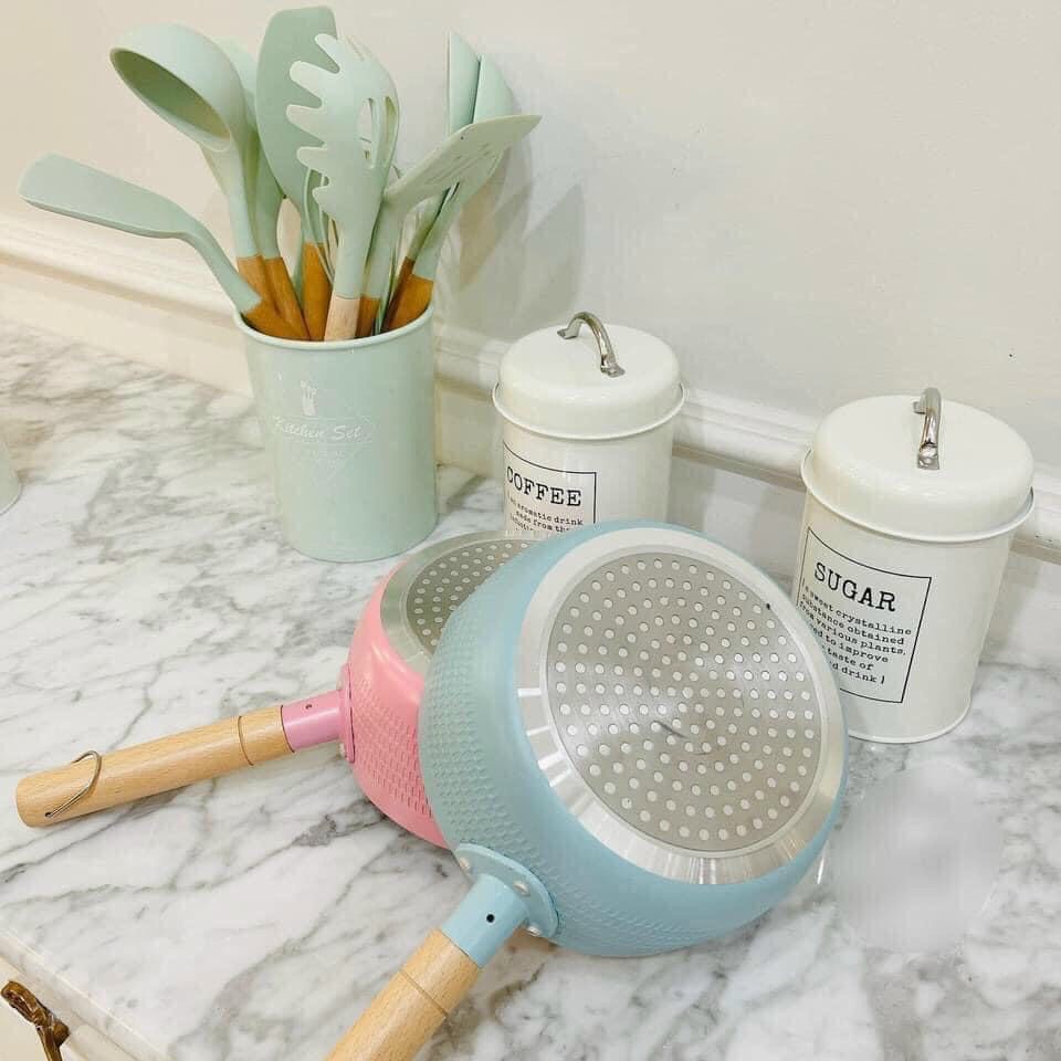 - Chảo, nồi lòng sâu chống dính với các màu pastel vô cùng tinh tế và trang trọng sẽ làm đẹp thêm cho căn bếp nhà bạn.