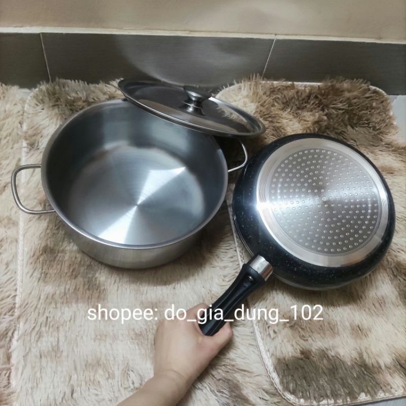 Nhà cửa & Đời sống > Dụng cụ nhà bếp > Chảo || Chảo Chống Dính đáy từ 24cm và Nồi Inox 24cm dùng Bếp Từ, Bếp Gas, Bếp Hồng NgoạiCòn hàng