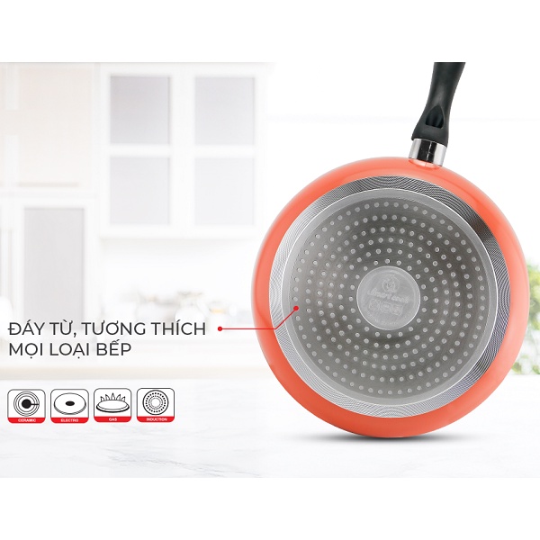 Tương thích mọi loại bếp: Chảo đáy từ có thể linh hoạt sử dụng trên mọi loại bếp: bếp từ, bếp hồng ngoại, bếp gas.