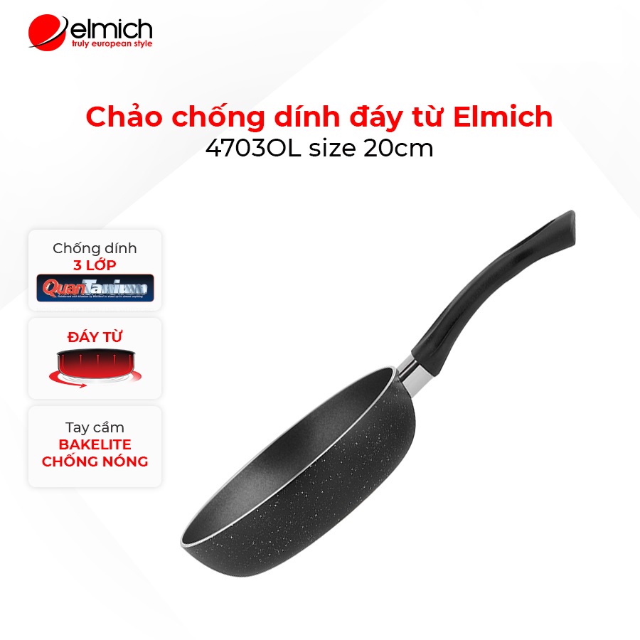 Chảo chống dính đáy từ cao cấp Elmich 4703OL size 20cmMàu sắc: Đen mờ vân đá