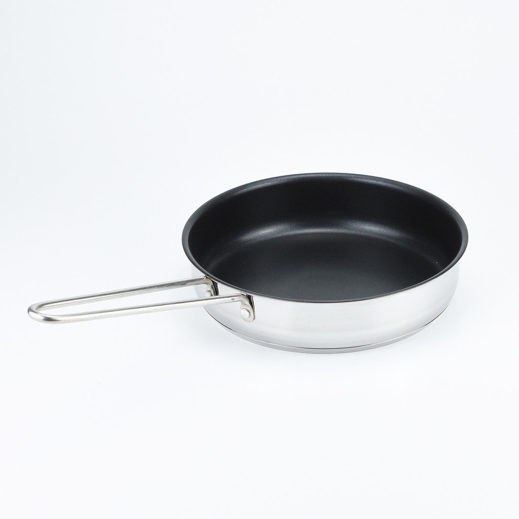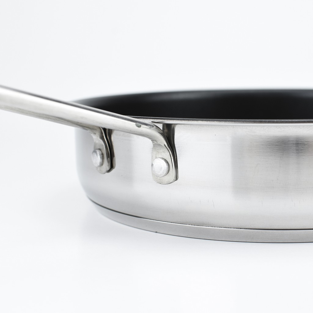 Chảo có kếu cấu đáy 3 lớp: 2 lớp inox & 1 lớp hợp kim nhôm ở giữa giúp nhiệt được phân tán đều khắp đáy nồi làm cho thực phẩm chín đều và nhanh hơn, tiết kiệm thời gian đun nấu.