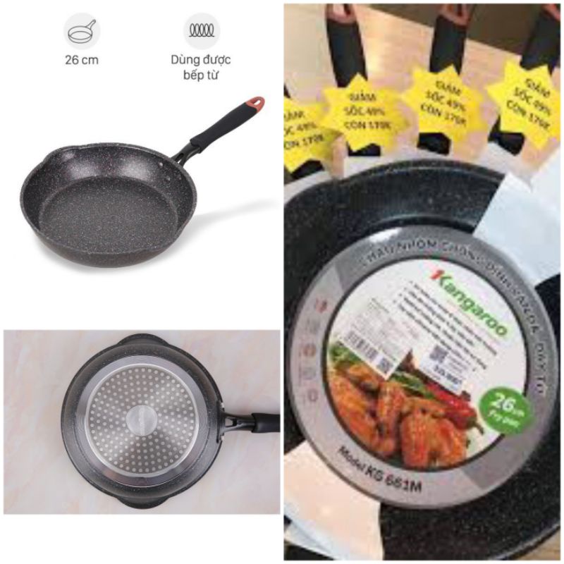 Chảo chống dính đáy từ Kangaroo KG661M size 26cm