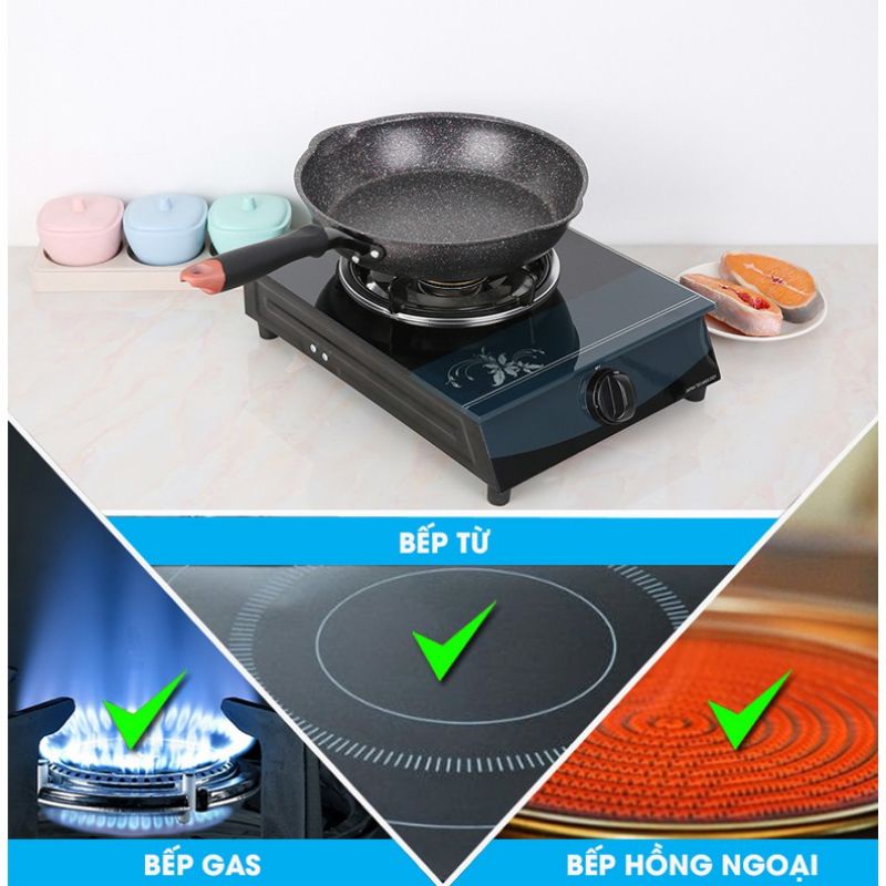 Loại chảo Chống Dính Đáy TừChất liệu thân chảo Hợp Kim Nhôm, Phủ Lớp Vân Đá