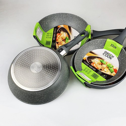 Giới thiệu Chảo chống dính đáy từ vân đá GREEN COOK 22 - 24 - 26 - 28 - 30 cm tay cầm chịu nhiệt - Hàng chính hãng