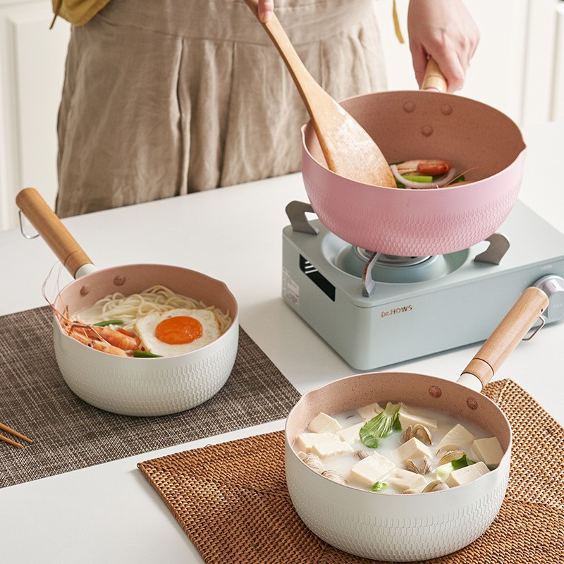✅Thân nồi dày dặn, phủ lớp chống dính vân đá y tế cao cấp, lòng chảo chống dính, dễ dàng vệ sinh