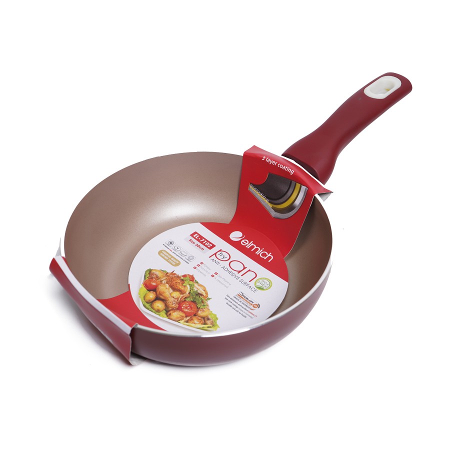 CHẢO CHỐNG DÍNH EL-7105 SIZE 28CMLàm bằng hợp kim nhôm nguyên chất, bên trong phủ 3 lớp chống dính Greblon cao cấp an toàn và siêu bền, không giải phóng chất PFOA gây ung thư, chịu nhiệt lên đến 250 độ C