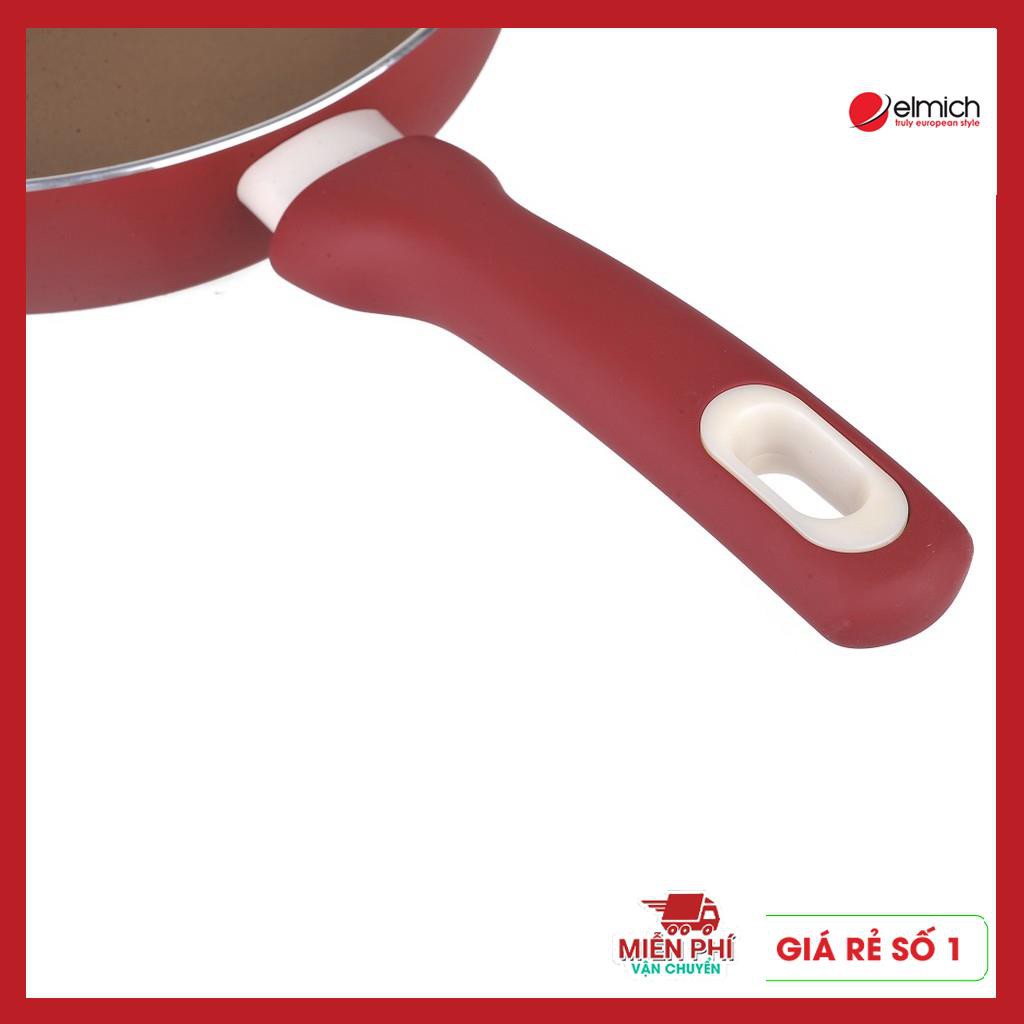 Chảo chống dính Elmich 26cm, chảo chống dính sâu lòng màu đỏ Elmich, dùng cho mọi loại bếp