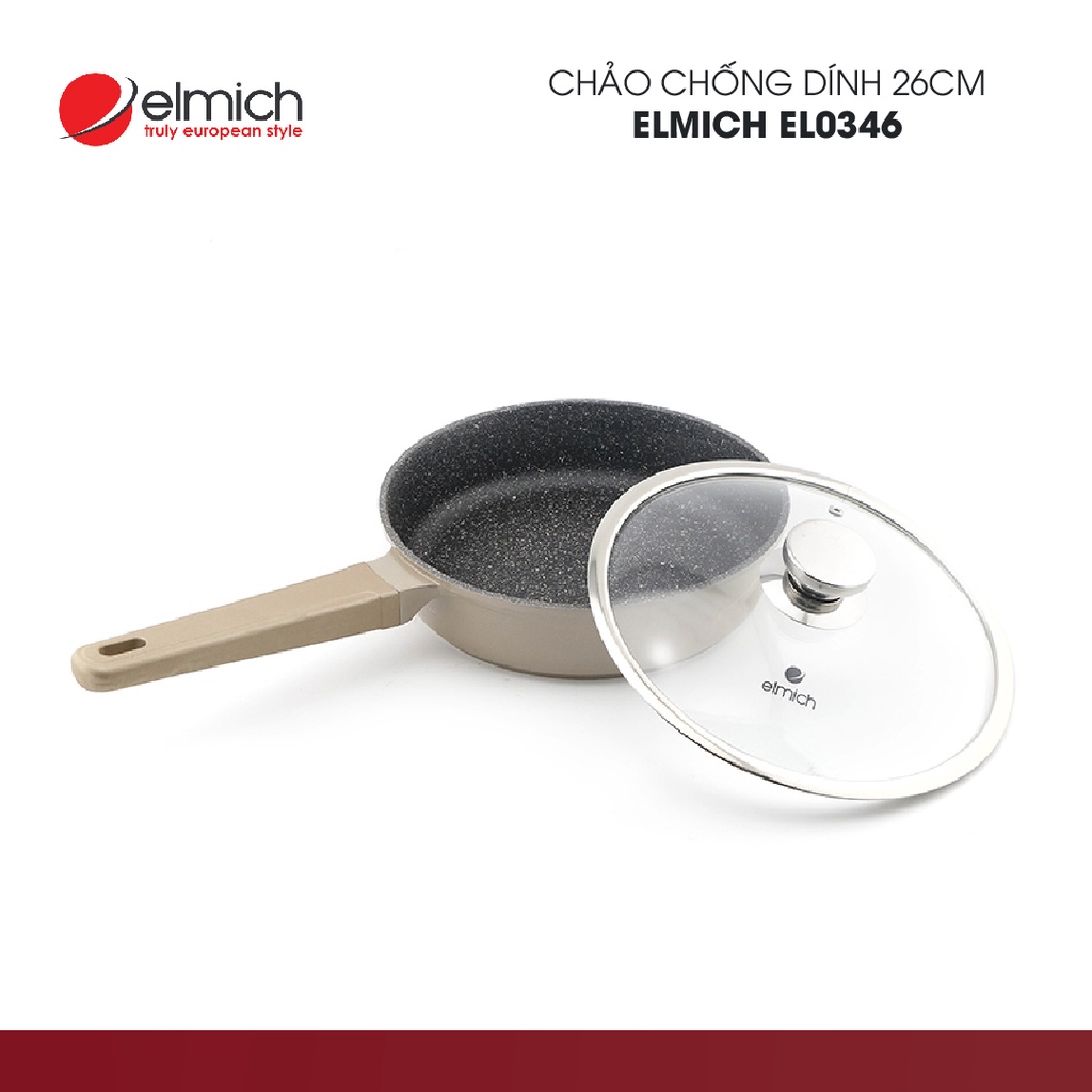 Chảo chống dính ELMICH cao cấp có vung kính, đáy từ-Vitaplus Perla | EL0353 size 28cm | EL0346 size 26cm