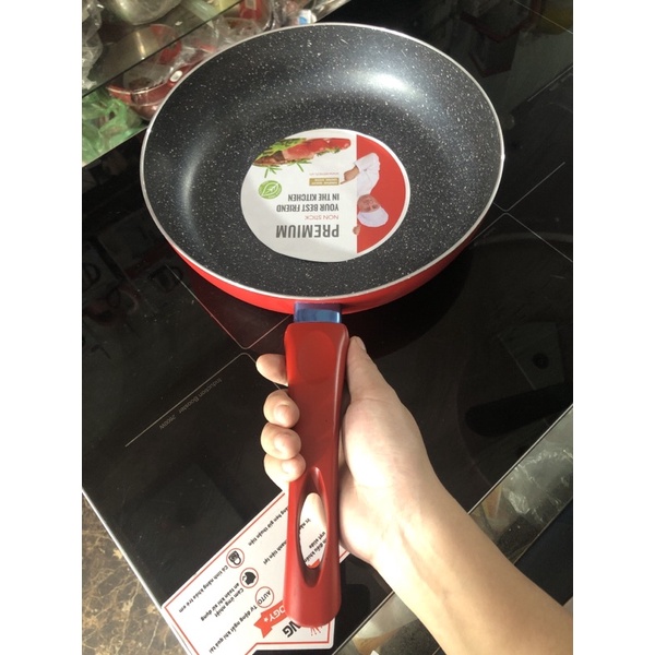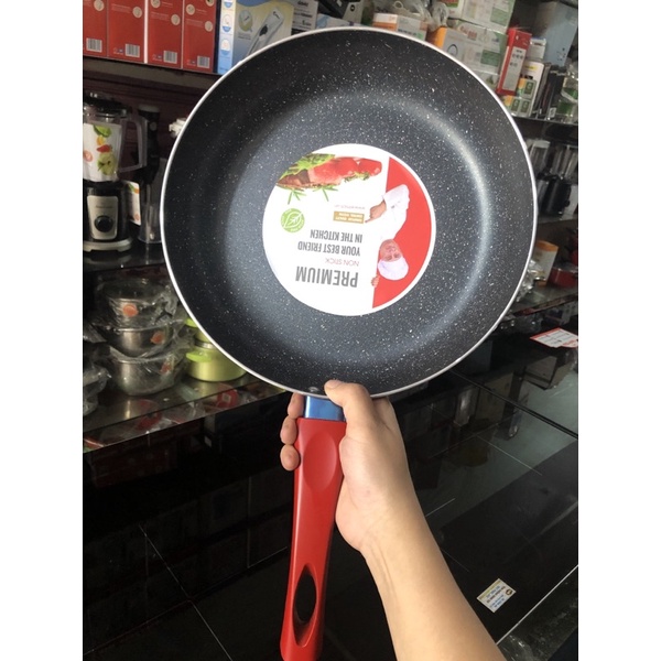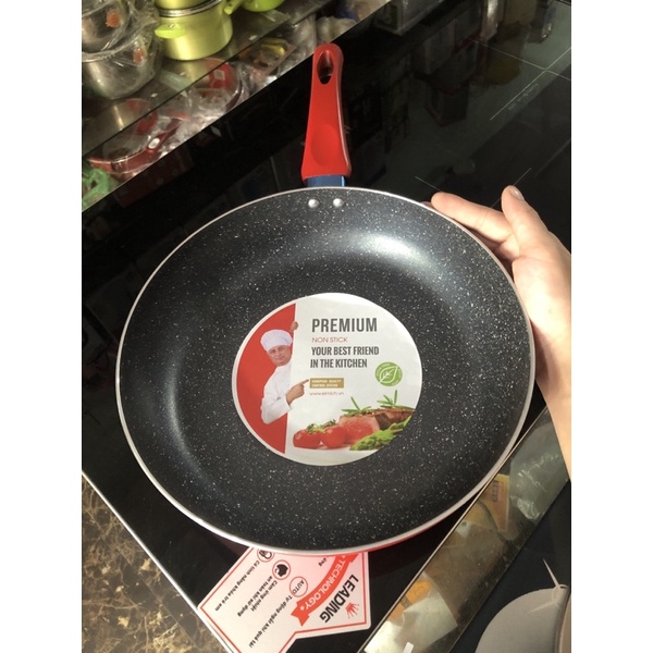 - Cán chảo bằng nhựa chống cháy, có khả năng chịu nhiệt lớn, cách nhiệt hoàn toàn