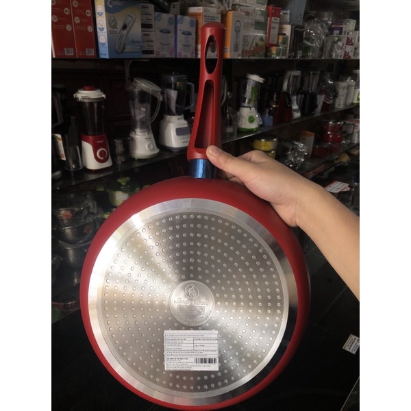 - Chảo dùng hợp kim nhôm dày tăng độ cứng và giảm đi trọng lượng so với inox, giúp người phụ nữ cầm dễ dàng