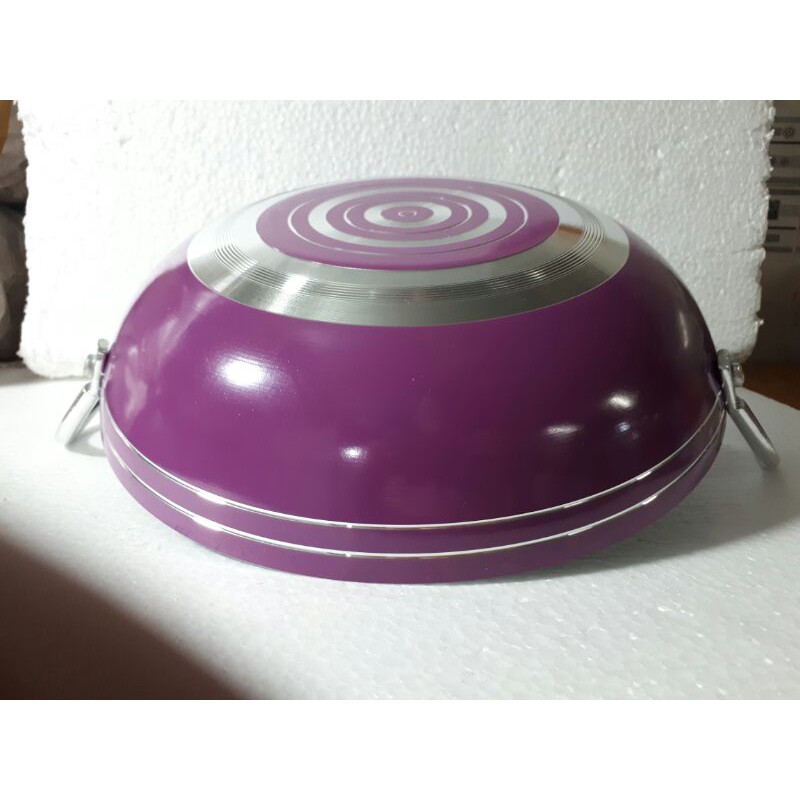 Chảo với phần men trong màu đen và bên ngoài sơn tĩnh điện rộng rãi màu đông đảo màu sắc như hình,