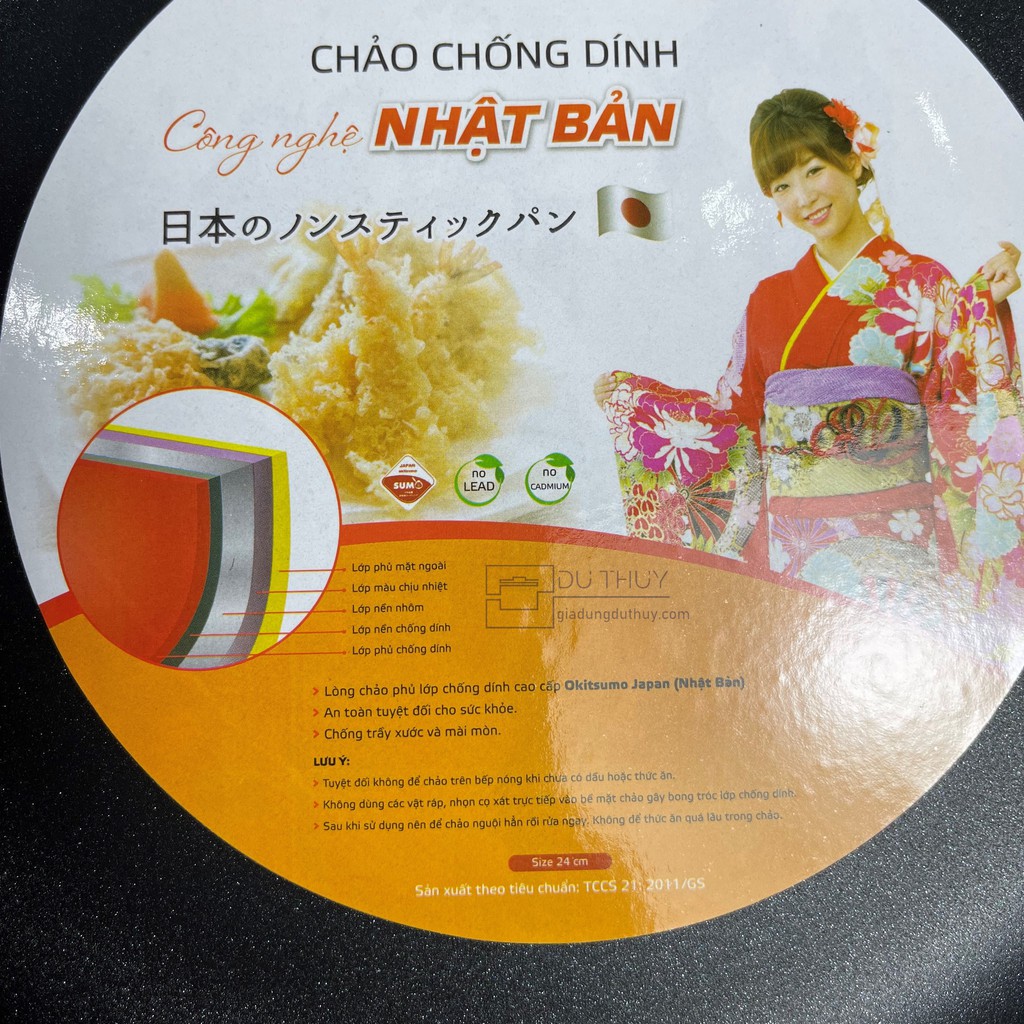 - Chảo được phủ lớp chống dính OKitsumo Nhật Bản siêu bền, an toàn tuyệt đối cho sức khỏe người dùng. Bề mặt chống dính cao cấp dễ dàng vệ sinh, hạn chế tối đa tình trạng bong tróc.
