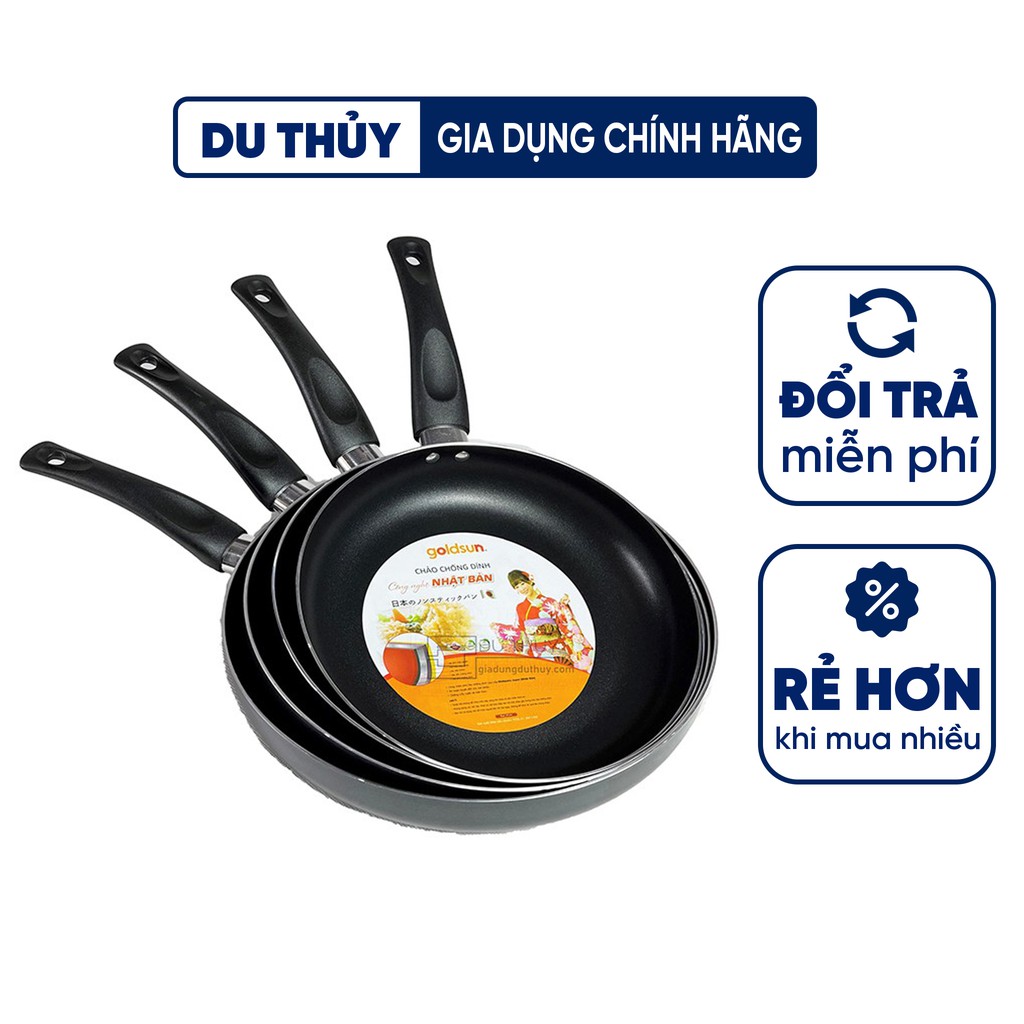 Chảo chống dính Goldsun nhôm cao cấp loại lớn, tay cầm bọc nhựa cách nhiệt, chất chống dính Nhật Bản đường kính 24-30 cm