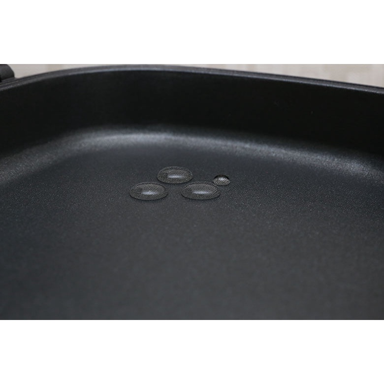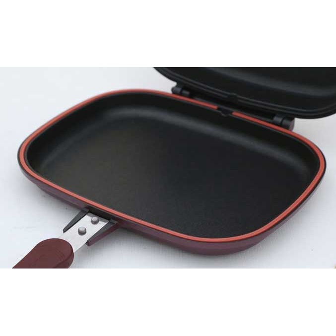 Hai mặt chảo phẳng, dễ dàng xoay chuyển, vững chắc khi đặt trên bếp, chất liệu hợp kim nhôm thu nhiệt nhanh, phân bổ nhiệt đều.