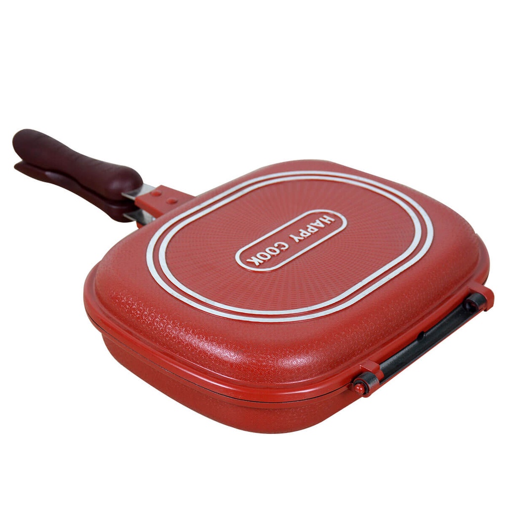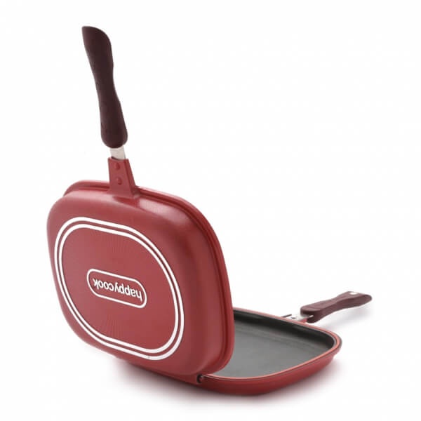Chảo 2 mặt đa năng Happycook HC-2SCF thương hiệu Happycook - Việt Nam, sản xuất tại Indonesia có thiết kế 2 mặt tiện dụng, giúp người dùng xào, rán thức ăn mà không sợ văng dầu, mỡ, không lo ám khói, đặc biệt dùng để nướng thịt hay bánh tiện lợi.Chảo làm bằng chất liệu hợp kim nhôm, có độ dày 2.3 mm.