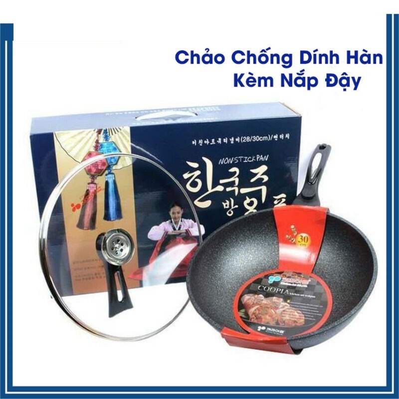 Chảo Chống Dính Hàn Quốc Có Nắp Đậy Tặng kèm Sạn Xào Gỗ Cao Cấp