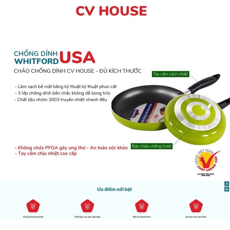 Chảo Chống Dính Hợp Kim Nhôm CV HOUSE công nghệ Mỹ -giá thành Việt (đủ cỡ từ 18 - 30cm)