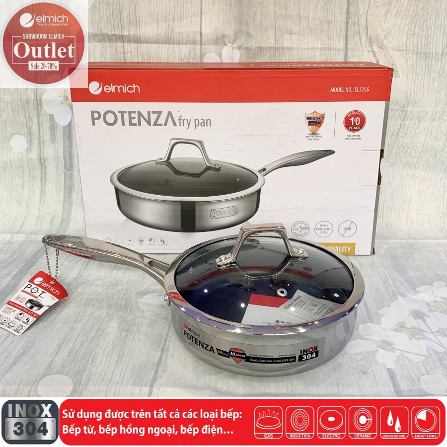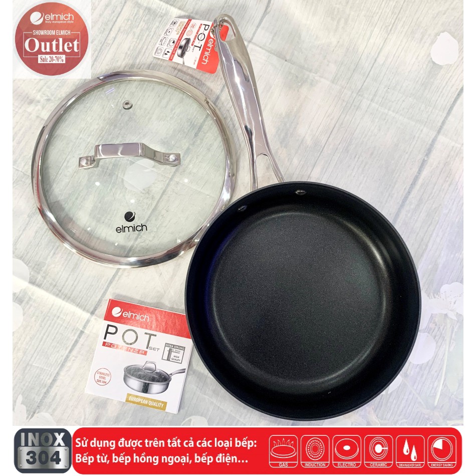 Nhà cửa & Đời sống > Dụng cụ nhà bếp > Chảo || Chảo Chống Dính Inox 304 3 lớp Đáy Liền ELMICH Potenza EL3256 20cm/3257 24cm/3258 26cmCòn hàng