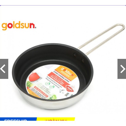 - Chảo chống dính inox Goldsun được phủ lớp chống dính OKitsumo Nhật Bản siêu bền, an toàn tuyệt đối cho sức khỏe người dùng. Bề mặt chống dính cao cấp dễ dàng vệ sinh, hạn chế tối đa tình trạng bong tróc. Bạn thoải mái chế biến các món chiên xào mà không sợ thức ăn bám dính vào lòng chảo.
