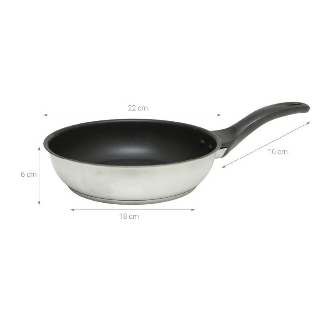 + Mặt ngoài là Inox sáng bóng, mặt trong có tráng lớp chống dính đặc biệt không làm dính thức ăn vào chảo sau khi chiên (rán).