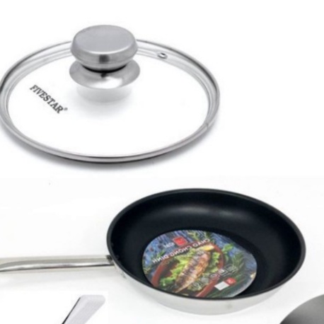 #chảochốngdínhChảo chống dính 3 đáy inox 430 Fivestar Standard và nắp kính bếp từ (30cm)