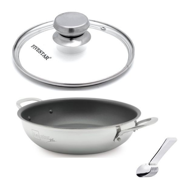 Nhà cửa & Đời sống > Dụng cụ nhà bếp > Chảo || Chảo chống dính inox Fivestar Standard 2 quai có nắp kính tặng 5 muỗng ( 18cm / 22cm / 26cm )Còn hàng