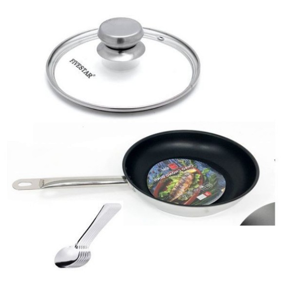 Nhà cửa & Đời sống > Dụng cụ nhà bếp > Chảo || Chảo chống dính inox Fivestar Standard và nắp kính (30cm) inox 430 , tặng 5 muỗng ăn , 3 đáy dùng được mọi bếpCòn hàng