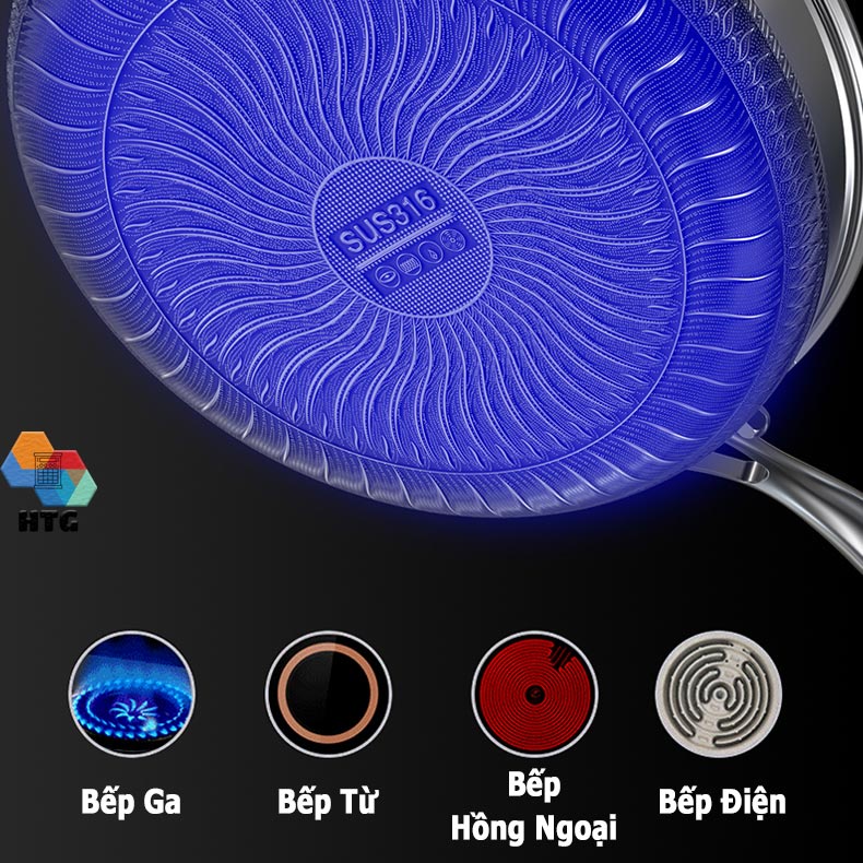 💥Chảo chống dính Inox SUS 316 không kén bếp, dùng được bếp từ, vân tổ ong thấm đều dầu, có nắp đậy