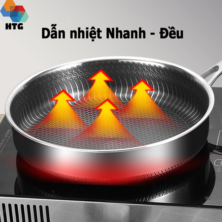 Chảo chống dính Inox SUS 316 loại lớn 30cm, bền bỉ, không kén bếp, dùng được bếp từ, vân tổ ong thấm đều dầu, có nắp đậy