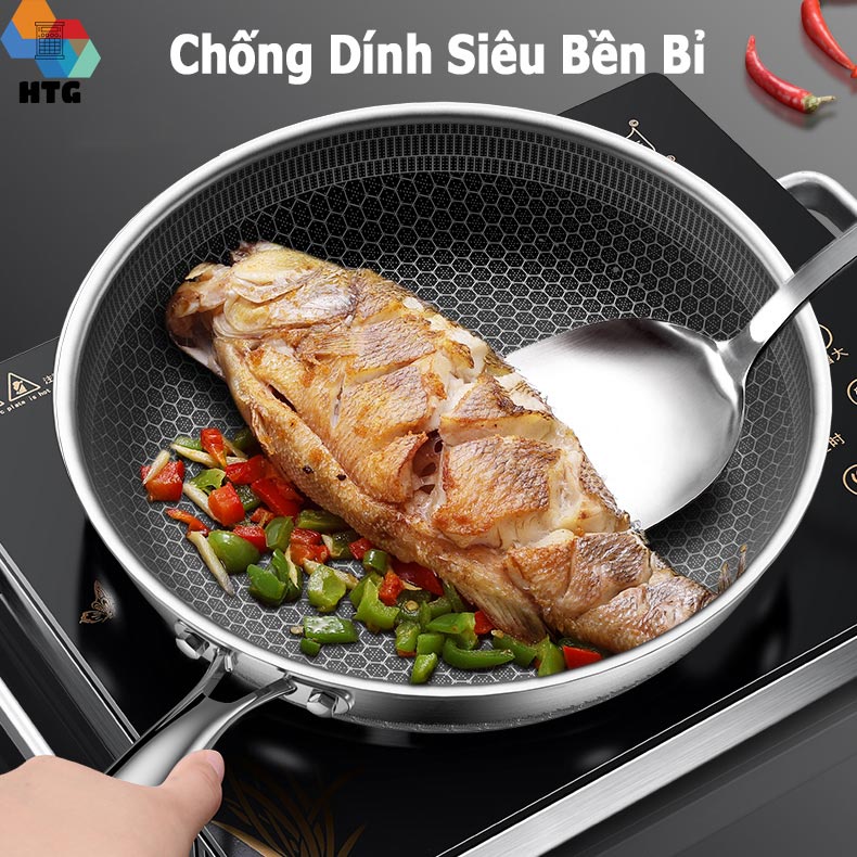 Nhà cửa & Đời sống > Dụng cụ nhà bếp > Chảo || Chảo chống dính Inox SUS 316 loại lớn 30cm, bền bỉ, không kén bếp, dùng được bếp từ, vân tổ ong thấm đều dầu, có nắp đậyCòn hàng