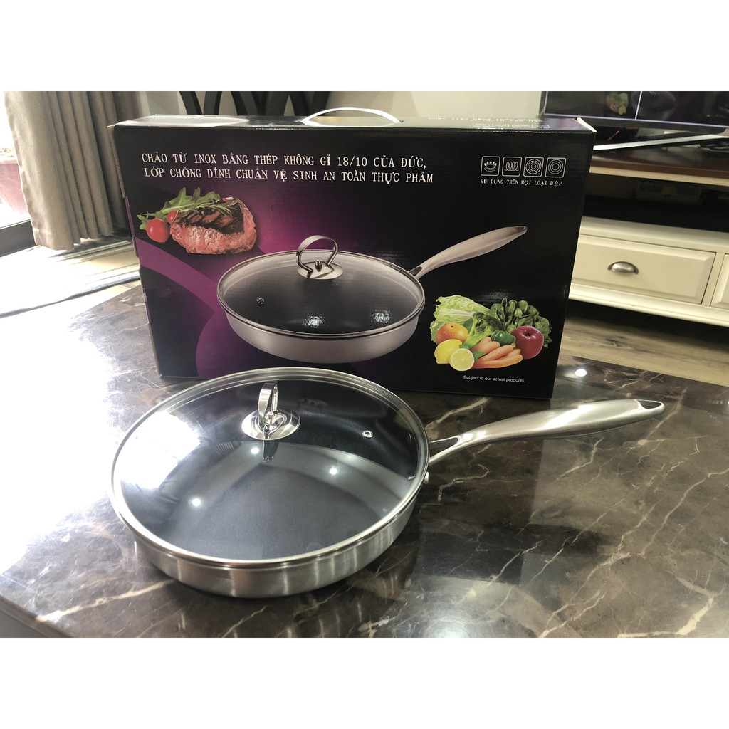 - Bề mặt chảo phủ 3 lớp chống dính chất lượng tốt, độ bền cao, an toàn với sức khỏe người dùng, nấu ăn tiết kiệm dầu mỡ và dễ vệ sinh.